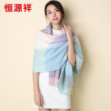 恒源祥冬季新款羊毛围巾女士大披肩两用春秋长款流苏格子保暖围脖