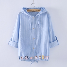春季新款甜美小清新可爱猫咪印花连帽宽松长袖防晒衫外套女学院风
