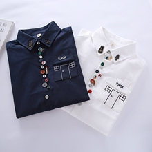 长袖白衬衫女宽松春装上衣学生百搭刺绣打底衫学院风翻领衬衣韩范