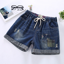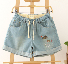 森女系日系牛仔短裤女刺绣松紧腰大码女式热裤学生休闲牛仔裤子夏