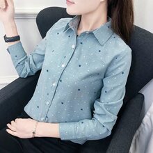 春季新款女装小清新百搭甜美印花全棉衬衫女长袖学生上衣打底衫