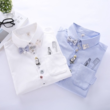 长袖衬衫女春季新款刺绣小清新学院风学生百搭翻领白衬衣上衣修身