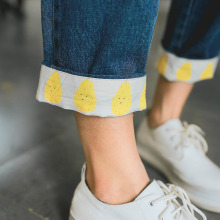 牛仔裤女学生长裤学院风童趣印花翻边宽松休闲裤森女系九分裤