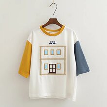 短袖T恤女宽松春季学院风日系森女系印花卫衣文艺百搭学生半袖