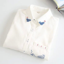 2017春装新款韩版文艺刺绣衬衫女长袖打底衫气质百搭学生白色衬衣