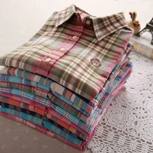 2017春季新款女装女士格子衬衫纯棉打底衫女子长袖衬衣女学生上衣