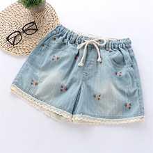 2017夏装新款女装森女系宽松热裤学院风刺绣水洗百搭牛仔学生短裤
