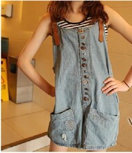 森女系日系宽松背带裤短裤牛仔女夏季学生纽扣水洗连体裤休闲裤子