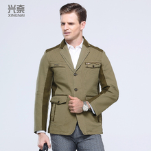 兴奈秋冬季男士夹克衫中年男西装领夹克外套爸爸纯棉水洗薄款上衣