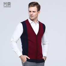 兴奈男士开衫背心中年男毛衣马甲秋季薄款针织衫爸爸装毛线衣V领
