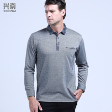 休闲翻领长袖T恤 秋季加厚宽松大码商务纯色中年男士打底衫上衣棉