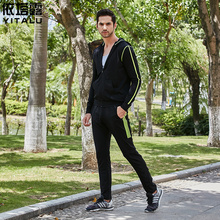 运动套装男款春季长袖连帽卫衣健身训练套装学生跑步服套装健身服