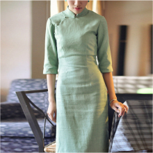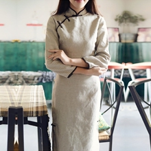 茉茉旗袍 初春六分装袖 纯色竹节亚麻 日常中长款旗袍 亦师亦友