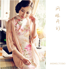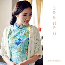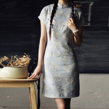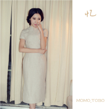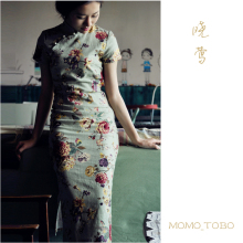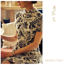 2012春夏新 MOMO_TOBO 复古花 改良连袖棉麻短款亚麻旗袍 一偶