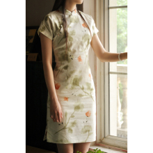 茉茉旗袍春夏季短袖短款文艺复古印花日常改良竹节亚麻旗袍晓莺
