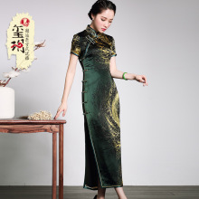 玺玥2017春夏季新款 丝绒中长款旗袍 优雅复古日常改良女士连衣裙