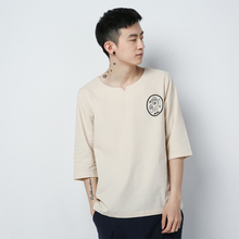 复古男装神像印花男士五分袖棉麻t恤东南亚民族风亚麻五分袖t恤