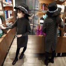 儿童针织衫长款毛衣2017秋冬新款韩版女童高领后开叉打底连衣裙子