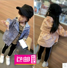 宝宝休闲外套 春秋款韩版女童外套 碎花收腰连帽风衣儿童夹克上衣