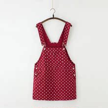 韩版日系森系小清新波点大口袋连衣裙学生复古显瘦文艺背带裙女
