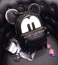 米奇 双肩背包 菱格绣线五角星铆钉米老鼠小双肩包 女包