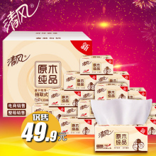 清风原木纯品家用抽纸餐巾纸原浆面巾纸卫生纸2层180抽12包批发