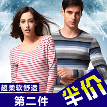 三针保暖内衣女士舒绒加厚全棉条纹青年秋衣秋裤套装女纯棉打底衫
