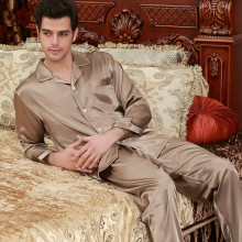 贵绣男士女仿 真丝睡衣长袖情侣丝绸明星同款春季薄款套装家居服