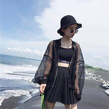 夏装夏季韩版韩国ulzzang原宿bf风百搭镂空透视网格外套防晒衣女