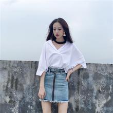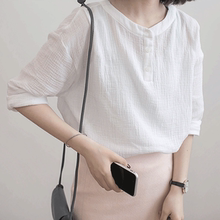 小彬2017春季新款韩版简约百搭学院风 七分袖衬衫衬衣白色上衣女