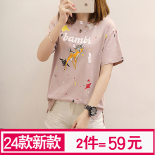 小彬2017夏季新款韩版学院风时尚可爱卡通短款休闲宽松上衣T恤女