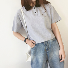东大门拼色纯棉短款短袖t恤翻领小宽松短装polo衫女