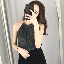 2017春夏新款韩版显瘦亮丝露背挂脖性感外穿内搭背心吊带上衣女潮