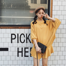 夏季韩版韩国ulzzang原宿bf风宽松荷叶摆裙子七分蝙蝠袖连衣裙女