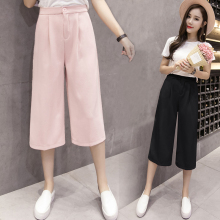 阔腿裤2017夏季新款高腰七分宽松韩版学生显瘦雪纺九分喇叭女裤子