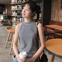 夏装夏季韩版韩国ulzzang原宿bf风百搭挂脖经典条纹背心打底衫女