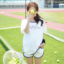 爱思黛 韩新款休闲运动套装女夏跑步学生宽松运动服瑜伽短裤两件