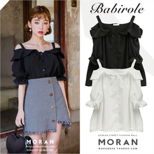 2017韩国夏甜美学院风小性感一字领吊带露肩衬衫荷叶边女学生上衣