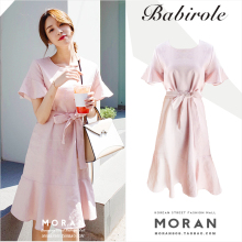 2017夏季韩版甜美学院风收腰系带连衣裙中裙荷叶边短袖学生宽松女