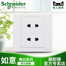 施耐德开关插座面板 四孔开关 双联二级双孔插座扁圆插座 如意白