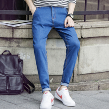 韩版弹力小脚裤百搭修身纯色牛仔裤男秋冬青年简约休闲牛仔潮裤子