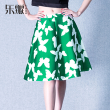 乐瓣2017春装新品半身裙欧美时尚包臀裙修身显瘦绿色蝴蝶印花短