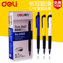 得力圆珠笔蓝色油笔按动笔芯原子笔学生学习文具商务办公用品批发