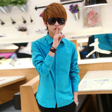 2016春秋新款韩版男士长袖衬衫修身青少年学生型男潮流立领衬衣
