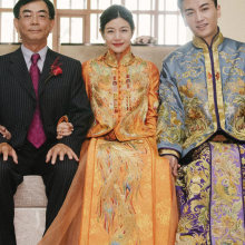 想念2015明星同款黄晓明男式秀禾服奢华黄龙袍卦中式新郎礼服