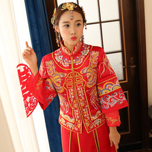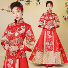 喜服嫁衣2016新款秀禾服新娘敬酒服秋冬季龙凤褂结婚旗袍礼服包邮