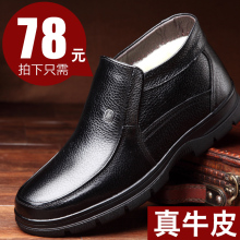 冬季男士棉鞋保暖棉皮鞋男中年老人冬鞋加绒真皮中老年男鞋爸爸鞋