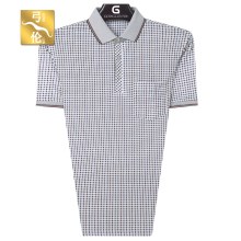 弓伦男装 夏装男士短袖商务休闲款 翻领中老年格子t恤爸爸