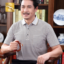 弓伦 夏季中老年男士翻领短袖T恤商务男装爸爸衣服