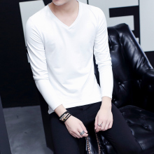 纯色打底T恤男 青年V领长袖T恤男士简约内衣打底衫休闲男装上衣